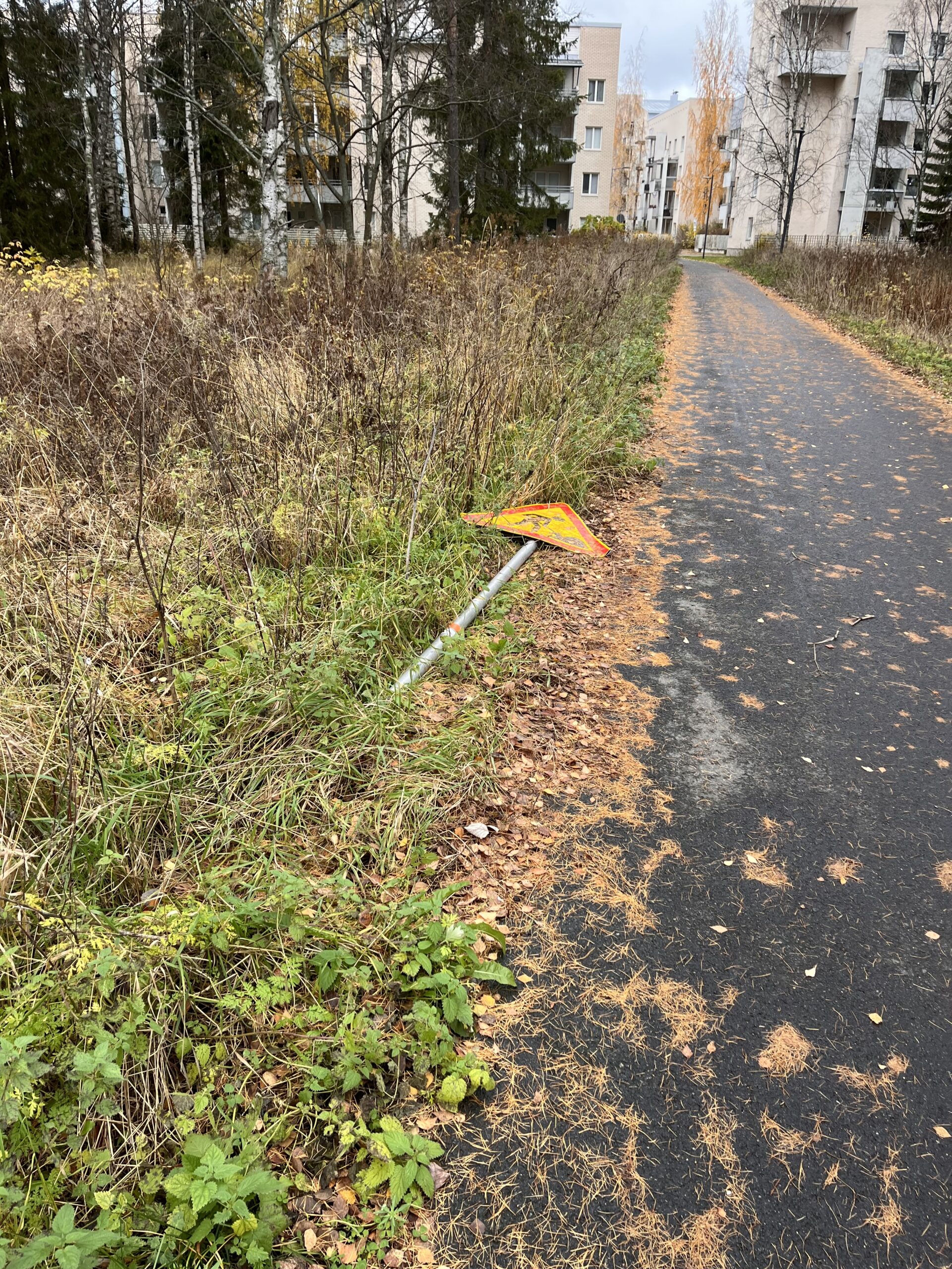 Lieköhän unohtunut tuo kaatunut varoitusmerkki tuohon työn jäljiltä? Koulun ja Ranta-Toppilan välinen pätkä uusittiin kesällä, eikä muita töitä nähdäkseni tässä kohtaa ole tekeillä.