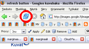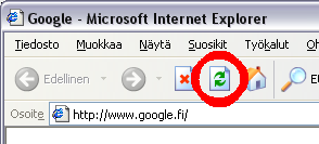 Virkistysnapit on kuvissa ympäröity punaisella. Kuvat ovat selainohjelmien Windows XP -versioista.