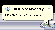 No samaan aikaan toisaalla velipoika haaveili skannerista koska vanhan joku tunari käräytti hajalle. Oli sitten bongannut Epsonin tarjouksen: skanneri + tulostin, yhteishinta halvempi kuin HP:n monitoimilaite. Soitti ja varmistin kyseisen tulostimen toimivuuden Linuxissa, jonka jälkeen hankinta suoritettiin. Toimituskin sujui näppärästi kun Jannella oli käyntiä täällä päin, joskin vasta tänä päivänä sain USB-kaapelin tuohon. Jostakin syystä ei oikeita kaapeleita Kampuksella ollut joten piti ostaa Anttilasta. No sainpahan silti ihailla taas sitä Acerin baby-läppäriä (oikeammin Tablet-PC) - oi vielä joskus, vielä joskus minulla on jotain noin pientä... ;-)