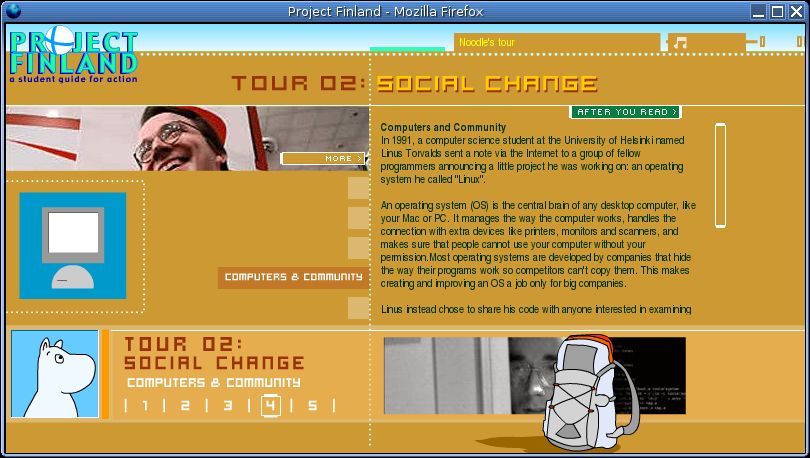 Ja aivan oikean siirron ne on tehneet: Suomen kulttuurin esittelyssä on tietotekniikan symboliksi valittu Linux 8-) Aika mairittelevaa tekstiä:
