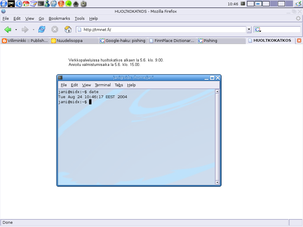 Ja tietenkin otin paikalliskopion ja kaappauksen.