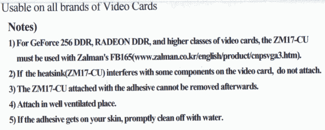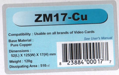 Zalman ZM17CU Videocard Cooler