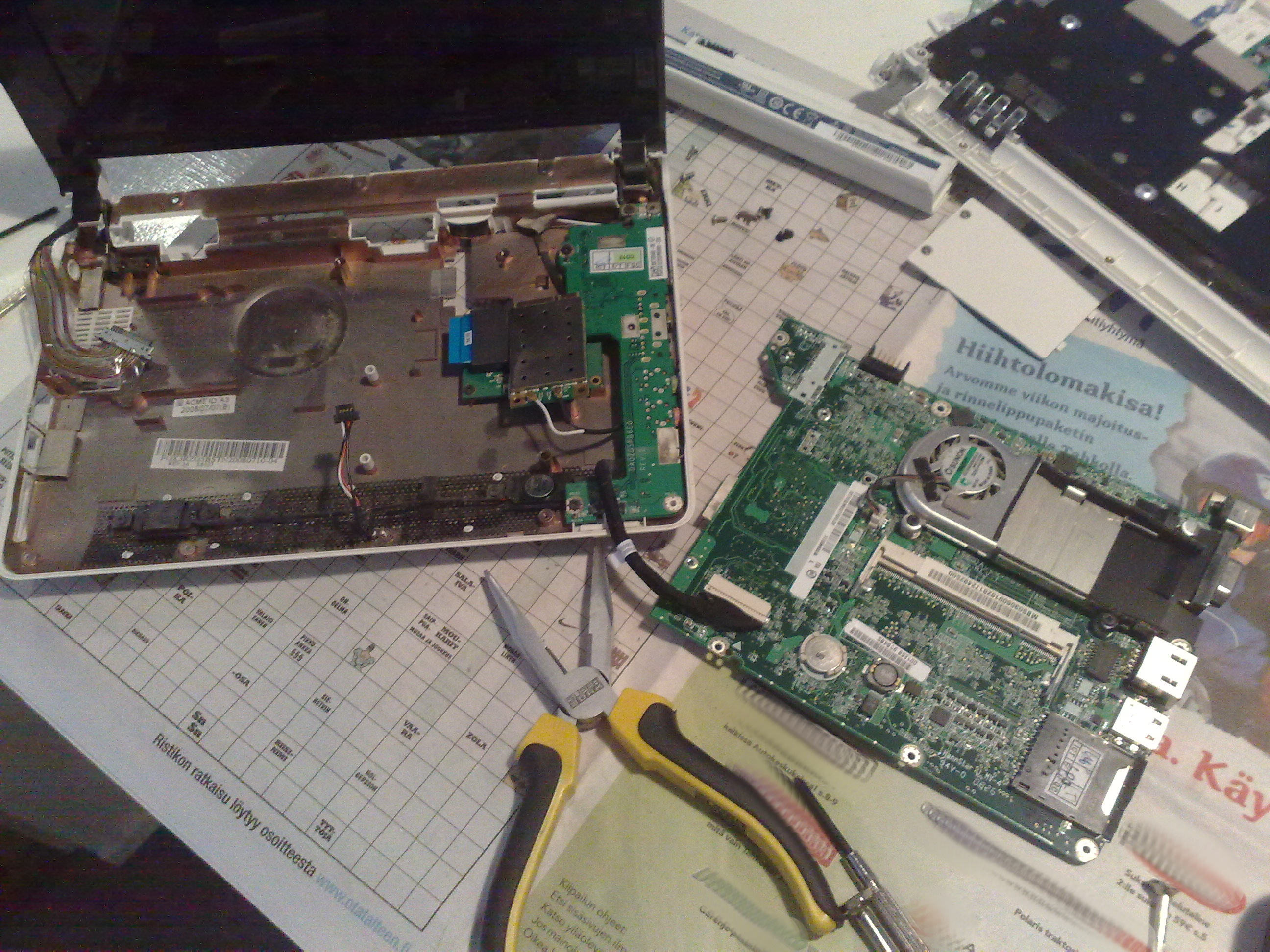 Tiedosto:Acer Aspire One A0A110, pohja ilman emolevyä ja emolevyn takapuoli.jpg