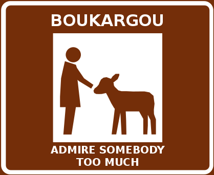 Boukargoun Admire Somebody Too Much on indie-albumien reseptillä tehty äänilevy. Taustakuva on kotieläinpiha-liikennemerkki, joka löytyi Wikimedia Commonsista.