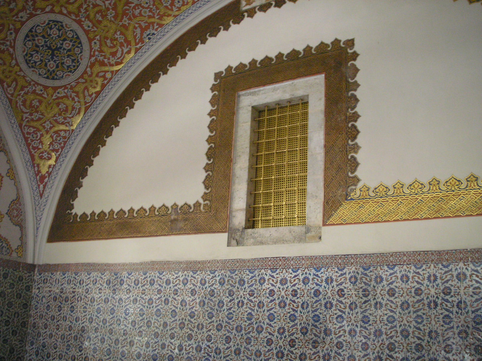 Visiirien neuvonpitosalin (Kubbealtı / Divan-ı Hümâyûn) seinässä oleva lävikkö, jonka kautta sulttaani saattoi kuunnella keskusteluja paljastumatta. Oma rajaukseni Wikimedia Commonsista löytyneestä alkuperäisteoksesta, jonka on luonut Gryffindor.