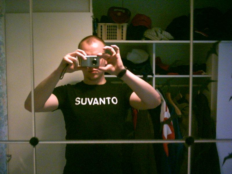 | 25. helmikuuta 2009 kello 11.38 | Suvanto-t-paita.jpg (tiedosto) | 54 KiB | Palapeilin kautta otettu kuva valkoisella SUVANTO-tekstillä varustetusta t-paidasta ylläni. | 1 | |