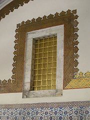 | 24. helmikuuta 2009 kello 21.02 | Kultainen salakuuntelulävikkö.jpg (tiedosto) | 249 KiB | Visiirien neuvonpitosalin (Kubbealtı / Divan-ı Hümâyûn) seinässä oleva lävikkö, jonka kautta sulttaani saattoi kuunnella keskusteluja paljastumatta. Oma rajaukseni [http://commons.wikimedia.org/wiki/File:Imperial_Council_Hall_Topkapi_2007_010.jpg | 2 | |